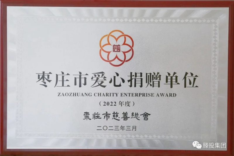发扬慈善精神,弘扬传统美德。必一体育平台在“2022年度枣庄市慈善事业先进单位和先进个人系列奖项”中荣获“枣庄市爱心捐赠单位”称号。近年来,集团先后投身于捐资助学、救灾济困等慈善事业,此次荣誉的获得,是枣庄市慈善总会对集团工作的肯定和褒奖。下一步,集团将一如既往关心支持和参与慈善事业,充分发挥先进典
